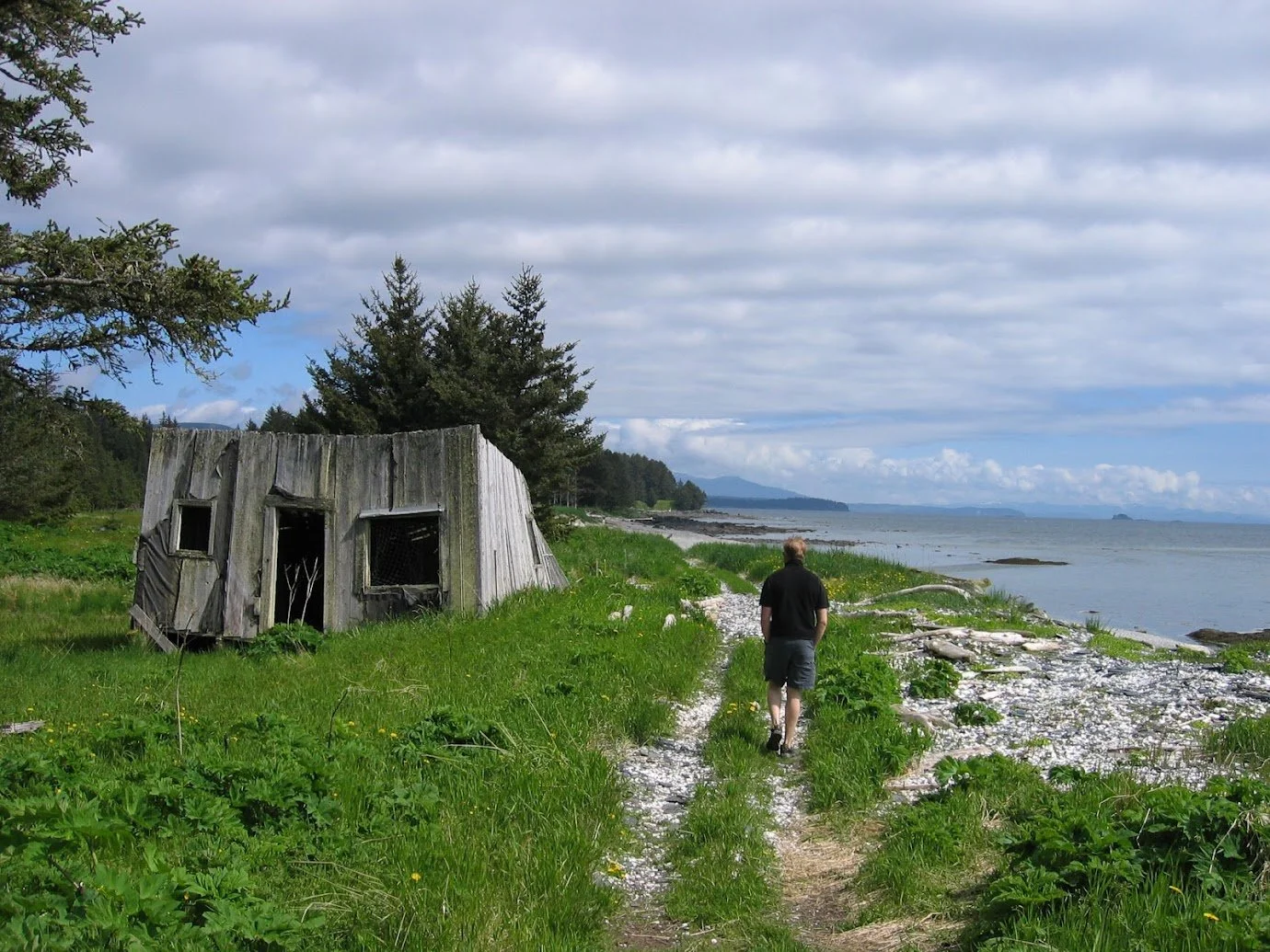 Andy walking the beach near the abandoned Afognak village May 23, 2005